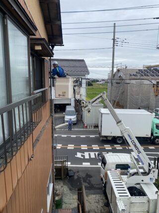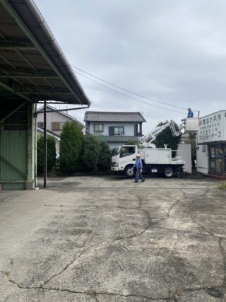 既存建物の解体前に数々の外線(建物の外から建物に入ってきている線)を外します。