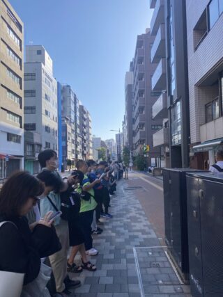 奥のコインパーキングのところで右に曲がり、さらに30mほど行列が伸びています