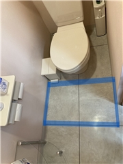 現地調査に伺い確認してみたところ、写真の青く囲んだ部分、便器の前に床が沈む症状が現れていました😿