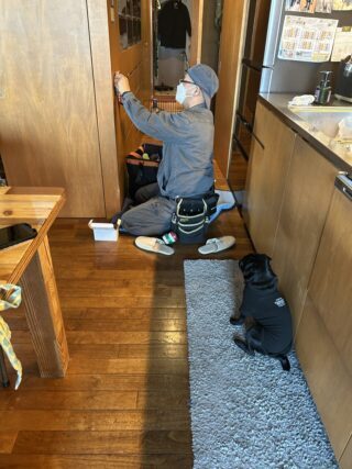 電気屋さんの作業を見守るパグちゃん🐕🦺
