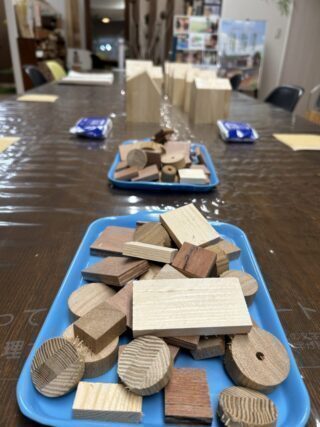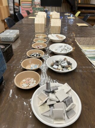 丸い木片やクロスのほかモザイクタイルなど、いろんな種類の建築端材をご用意しています✨