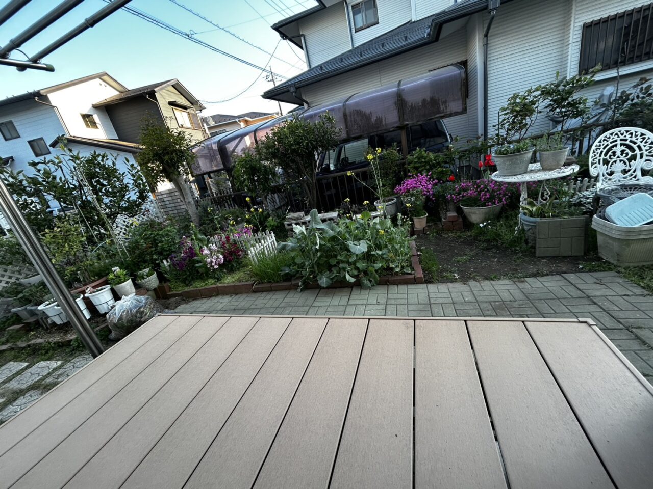 施工前☝ 施工後☝ ウッドデッキから見たお庭☝