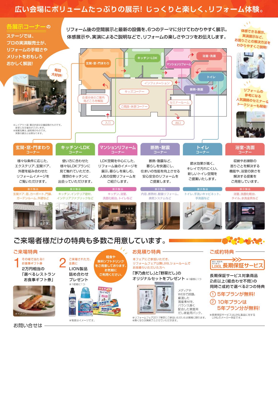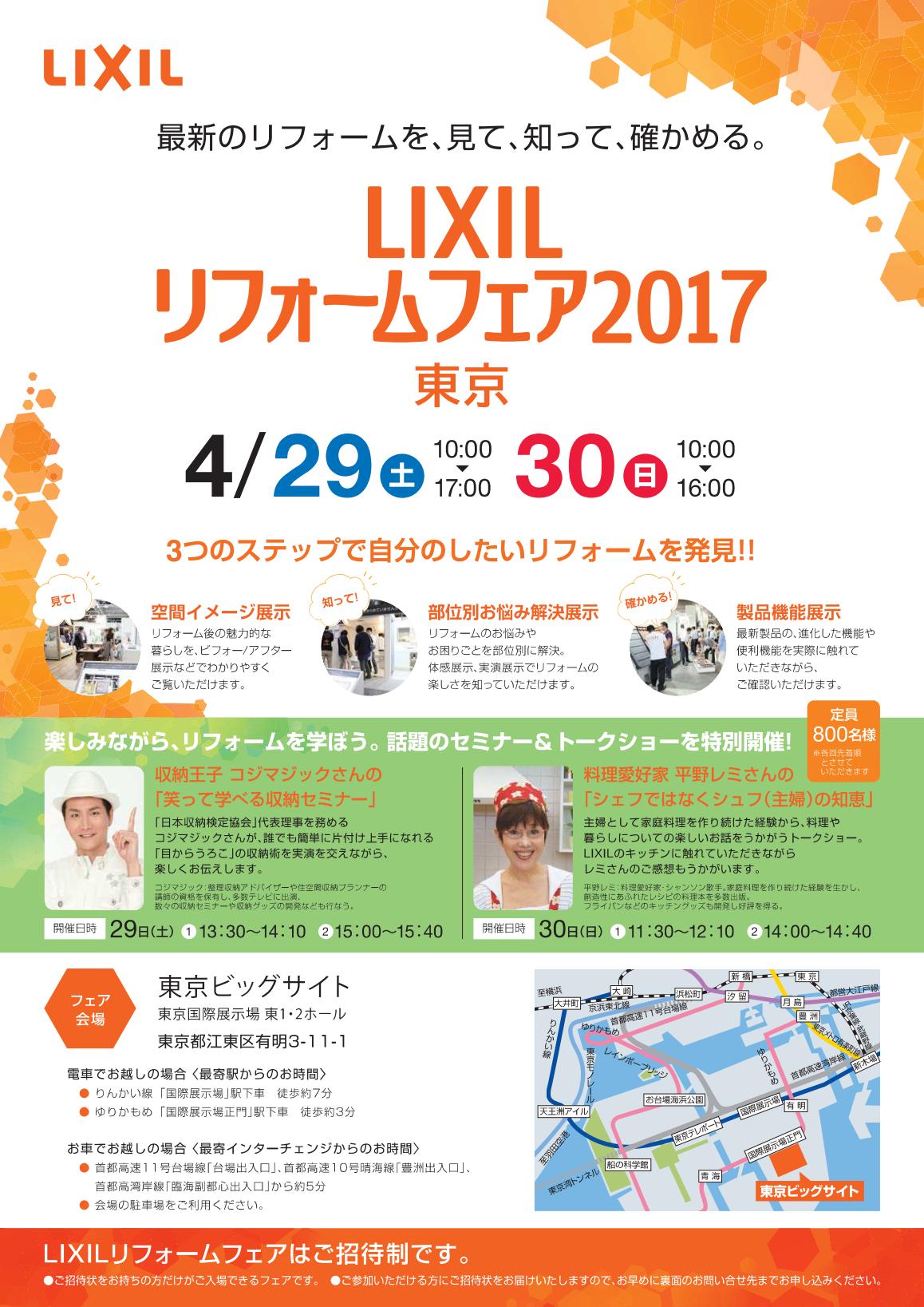 LIXILリフォームフェア2017東京のご案内 このイベントは終了しました。 ありがとうございました。 リフォームをもっと見たい、知りたい、確かめたいとお考えのお客様をご招待し リフォームを体感していただけるフェア「LIXILリフォームフェア2017東京」が 東京ビックサイトにて開催されます。 共有:クリックして LINE で共有 (新しいウィンドウで開きます)Click to share on Twitter (新しいウィンドウで開きます)Facebook で共有するにはクリックしてください (新しいウィンドウで開きます)クリックして Pinterest で共有 (新しいウィンドウで開きます) 参加お申込み お電話でのお申込みも承ります。 0120-50-7660 営業時間:8:30~17:30 定休日:日曜・祝日 お名前 ふりがな メールアドレス ご住所 電話番号(携帯電話可) 弊社を知ったきっかけ(複数回答可) HPSNSチラシ看板紹介 ご来場人数 大人:—以下から選択してください—1人2人3人4人5人6人7人以上 お子様:—以下から選択してください—01人2人3人4人5人6人7人以上 備考・気になることなど このフィールドは空のままにしてください。 プライバシーポリシー プライバシーポリシーに同意します。 ※確認画面はございません。今一度、入力内容をご確認ください。 確認しました Δ