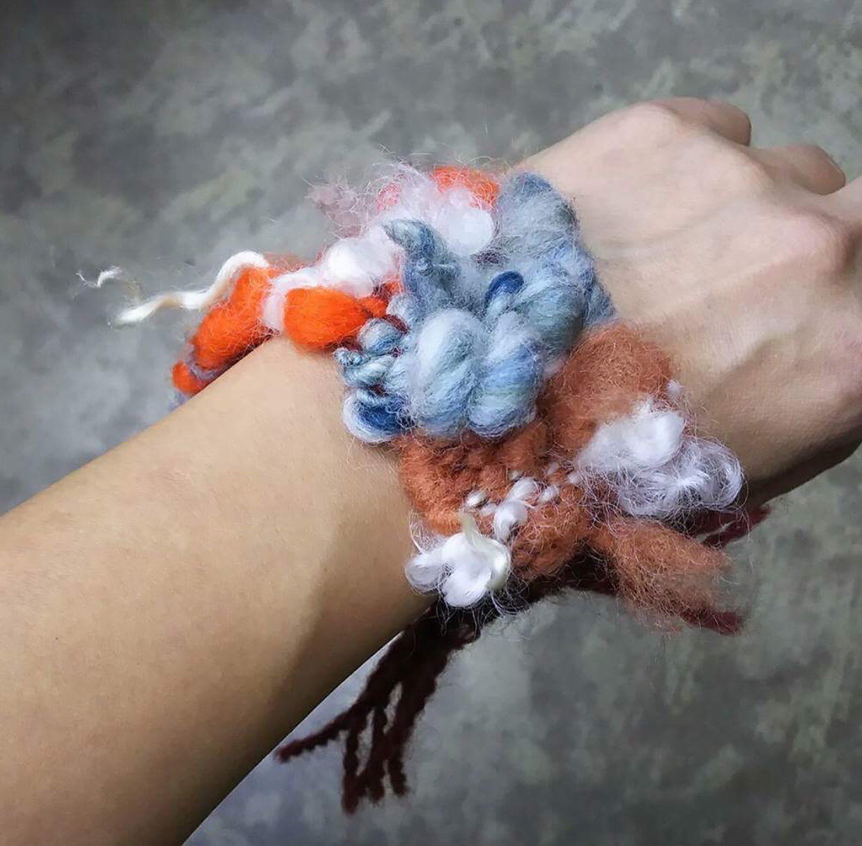 今回は「手つむぎ糸や原毛で織るリストバンド」のワークショップをします。