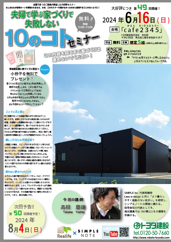 2024年6月16日(日)『夫婦で学ぶ家づくりで失敗しない10のコト』