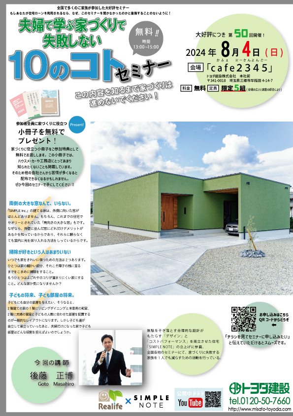 2024年8月4日(日)『夫婦で学ぶ家づくりで失敗しない10のコト』